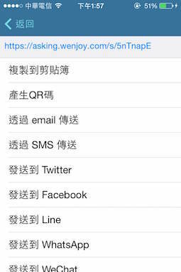 所以,如何具有獨特性及怎麼行銷推廣變成了我的首要課題。我開始搜尋關於如何觀察消費者喜好的方式,也就是需要做市場調查分析,可是委託市調公司的費用負擔過大,遂找到了Asking這個App開始設計問卷,如下步驟的完成問卷並導出QRcode放到宣傳單上(當然,一定要用優惠做為誘因!)。