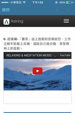 此外,插入影片或圖片給問卷增加互動性或是話題性,例如我會放上放鬆的音樂,或是風景照,希望能讓鬱悶的上班族得到好心情。