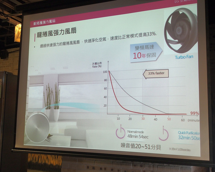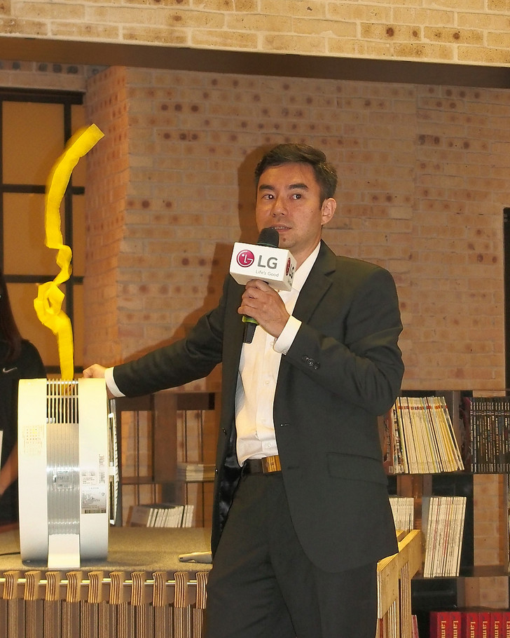 David現場以紙帶示範了高風速的效能。就算把LG空氣清淨機當涼風扇吹,也是很棒的。