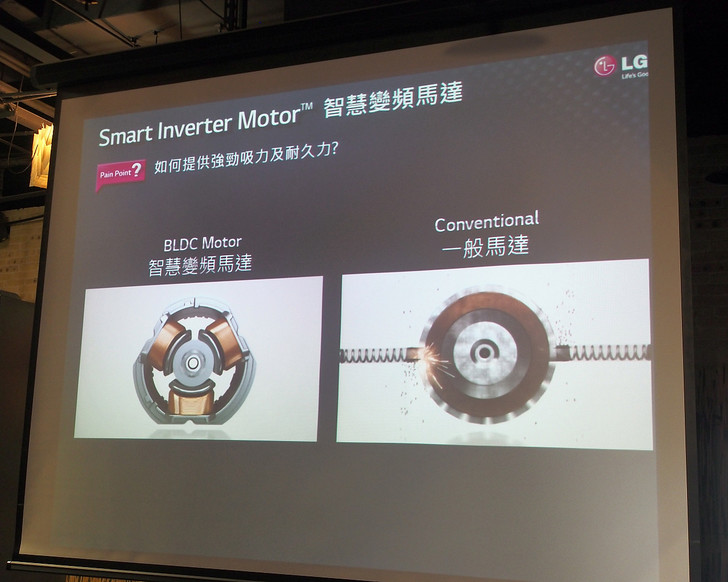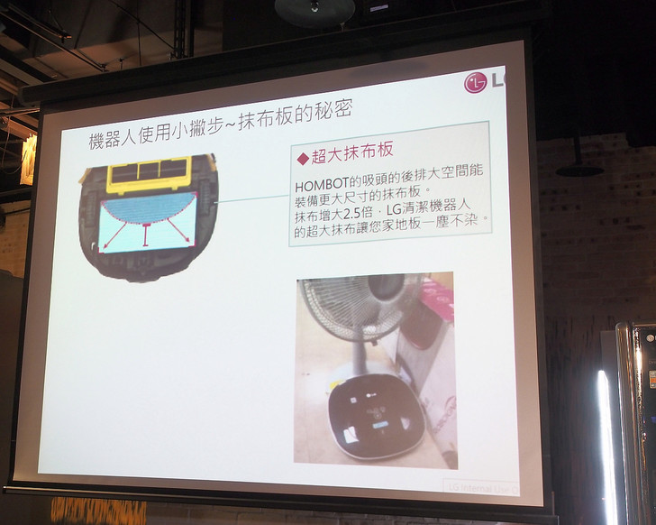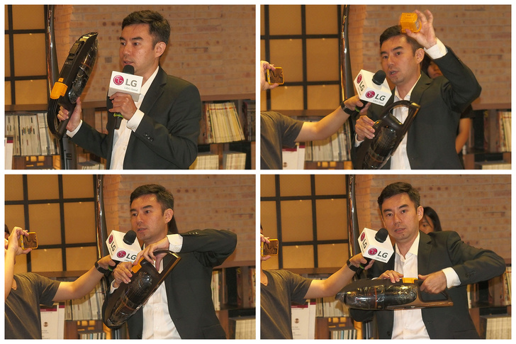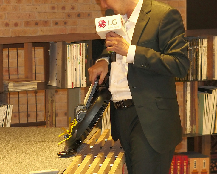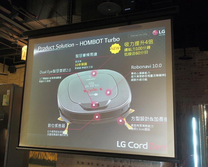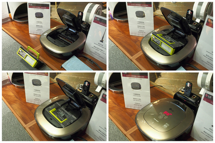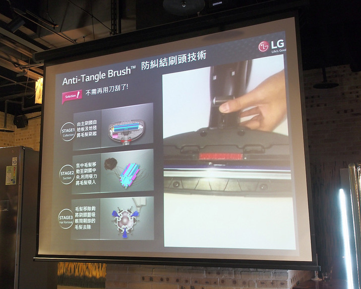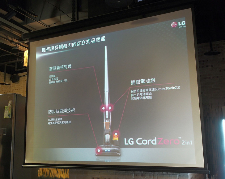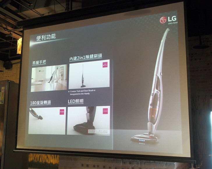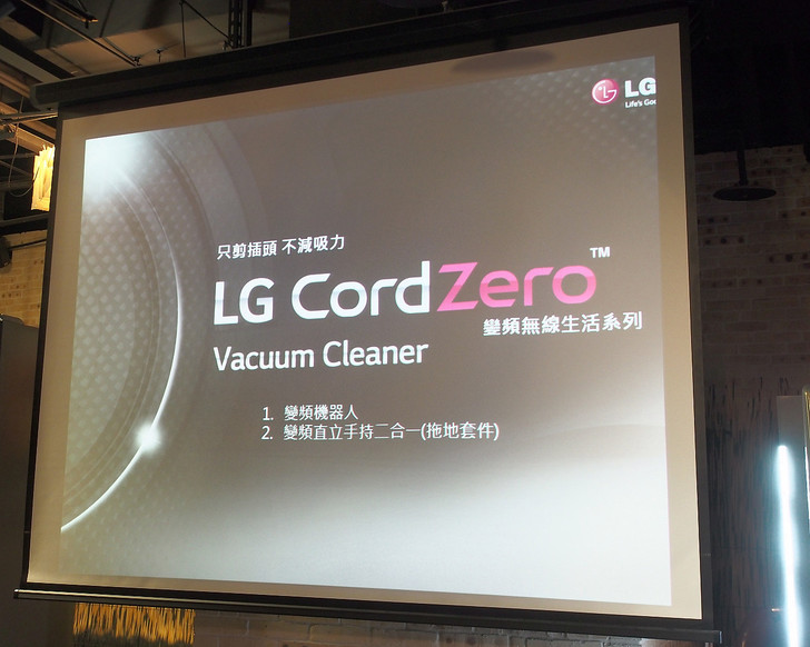 標榜「只剪插頭,不減吸力」的CordZero吸塵裝置,是目前LG主打的家庭用清潔機器。今天體驗會中介紹的包括掃地機器人和直立式吸塵器。