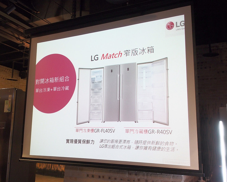 Match冰箱,突破「家用冰箱一定要有冷藏和冷凍」 的傳統觀念,把冰箱區分為「冷藏庫」和「冷凍庫」來分別販售,需要多大的冷凍/冷藏庫,就買這樣的空間。而59.5cm的寬度與可以變換開門方向的設計,都是因應現代人多變的生活空間產生的設計。