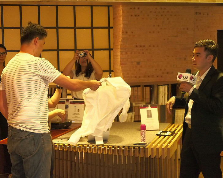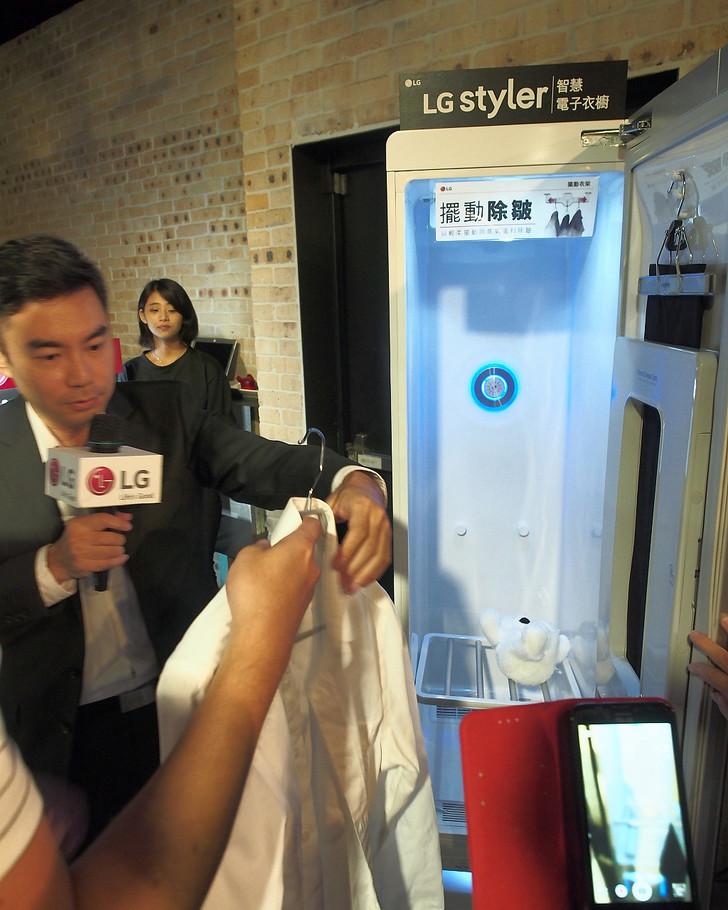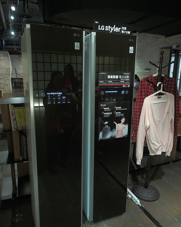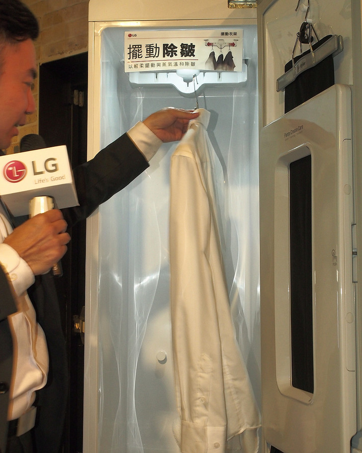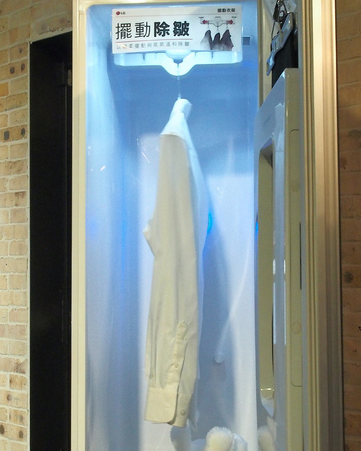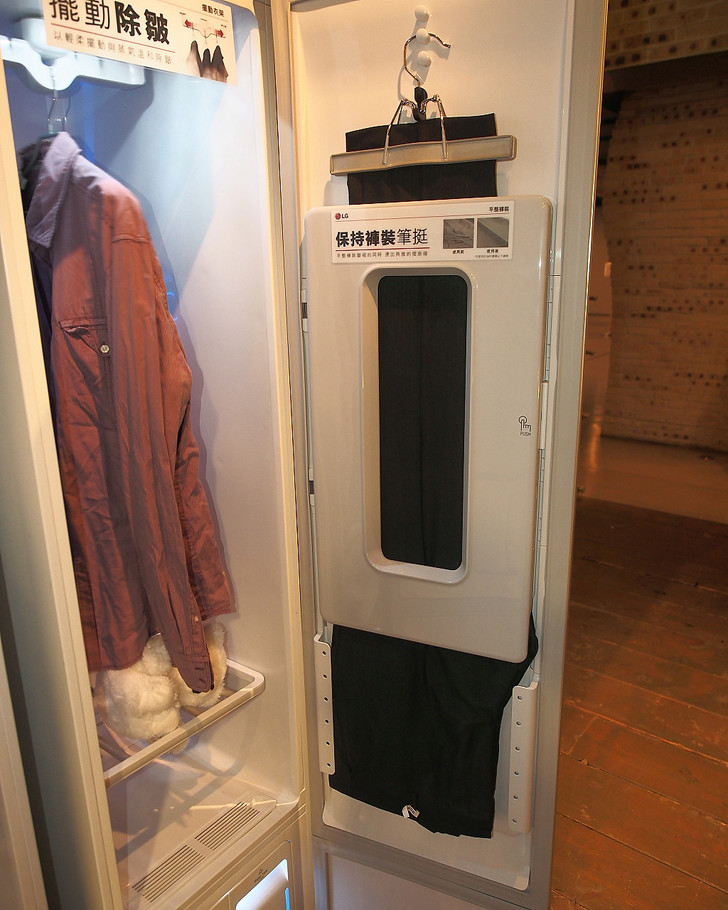 小弟認為這台機器是體驗會中最有創意的家電。只要把衣物放進這台很有型的衣櫥裡,只要一小段時間,裡面的衣服就會由皺巴巴變為平整,而且上面的灰塵氣味也會一併清除,甚至還有燙西裝褲的功能。傑克,這。。。真是太神奇了。