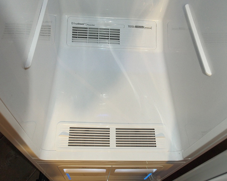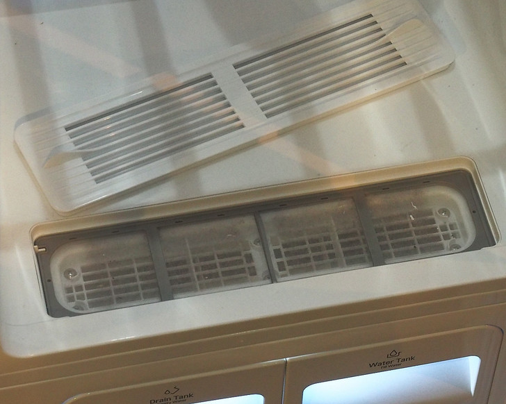 衣櫥的底部後方是蒸氣產生的位置,而前方則是內部空氣循環時入氣的位置,剛剛拆下的濾網就位於那裡面。