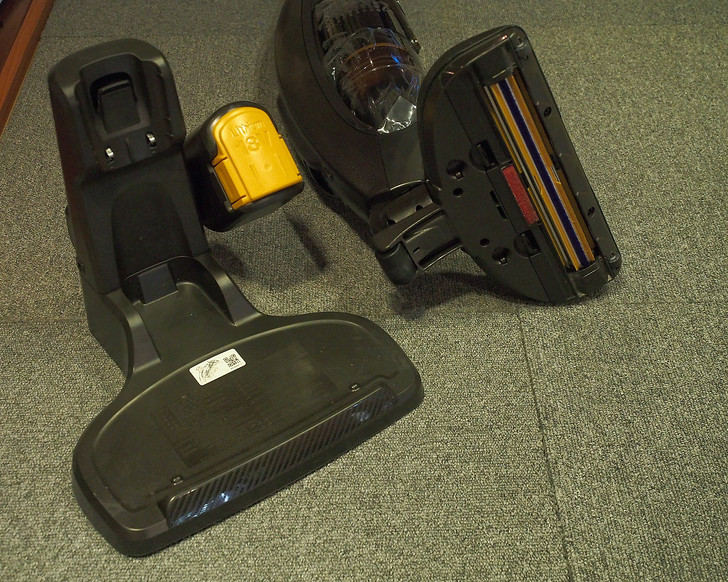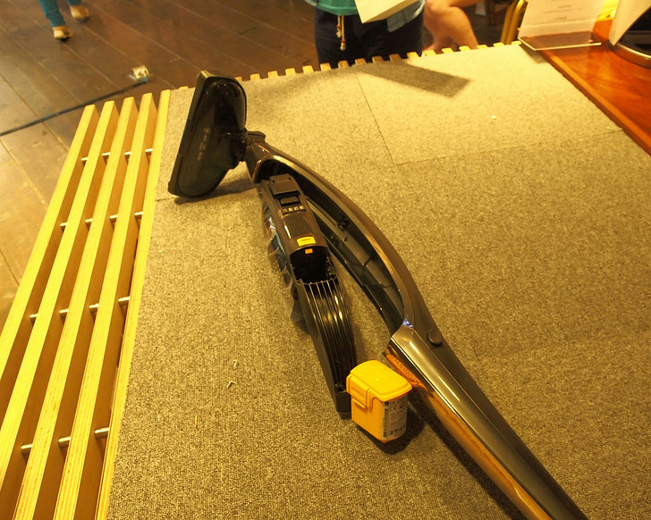 在體驗時間時,有幾位網友也把直立式吸塵器分解,可以清楚的見到區分為直立部位、手持部位及鋰電池。