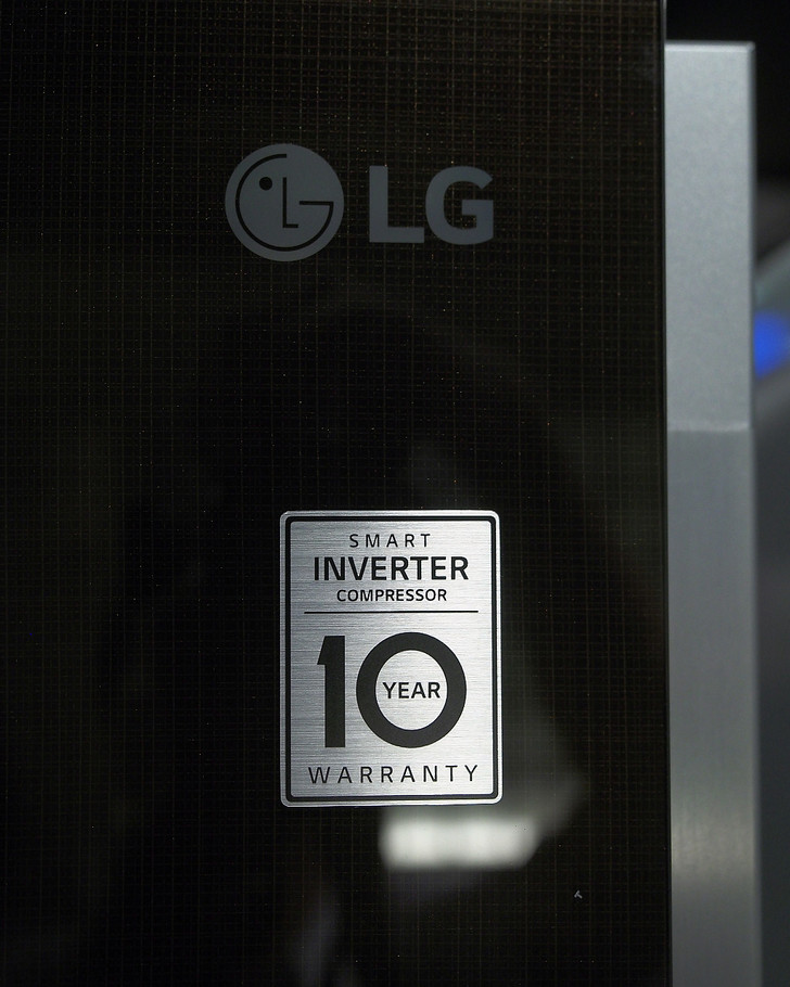 右上方的位置有這塊銘牌。現在LG的機器,只要用到直驅變頻馬達的,都把10年保固當作基本配備。