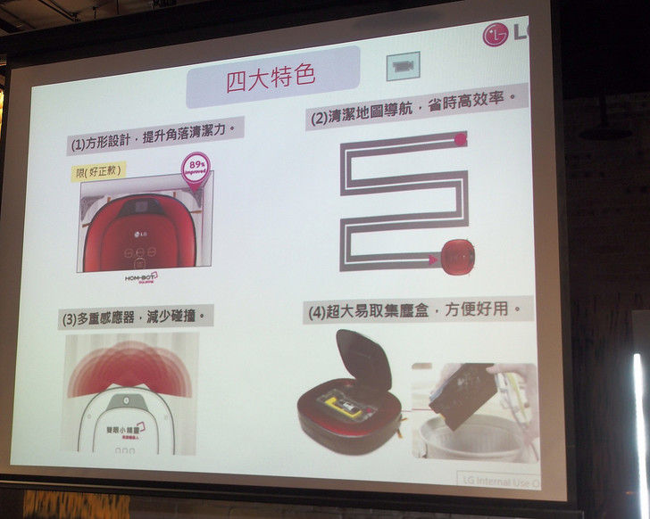 掃地機器人已經出現在小家電市場上很多年,已經不是有新鮮感的產品。那麼LG公司的產品要如何吸引人的目光?主要在於產品有以下投影片中的特點。