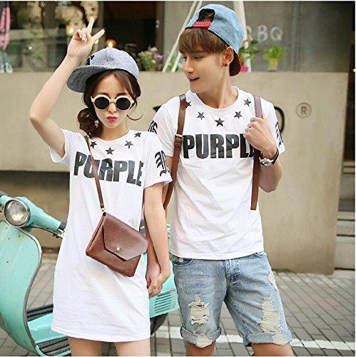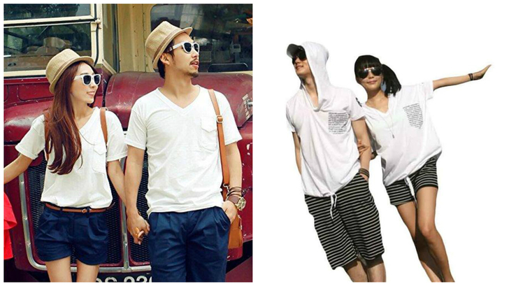 上身選擇男女都適合穿的純白色,下身可以穿材質相同但長度不同的褲子,但女生可以改穿短褲,男生則穿五分褲或長褲。除了服裝之外,墨鏡和帽子也可以成對配戴。