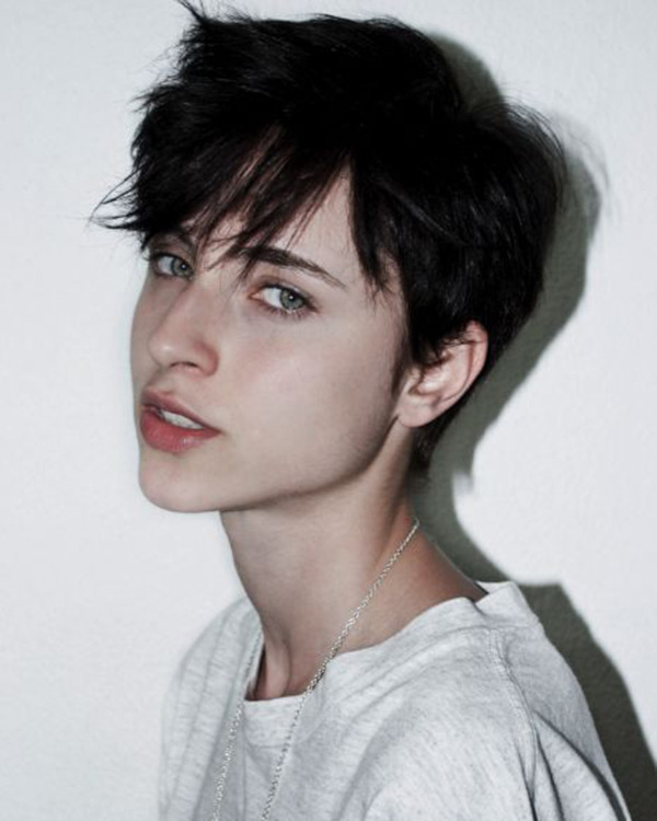 俏麗的極短髮配上一雙大眼和精緻的瓜子臉…