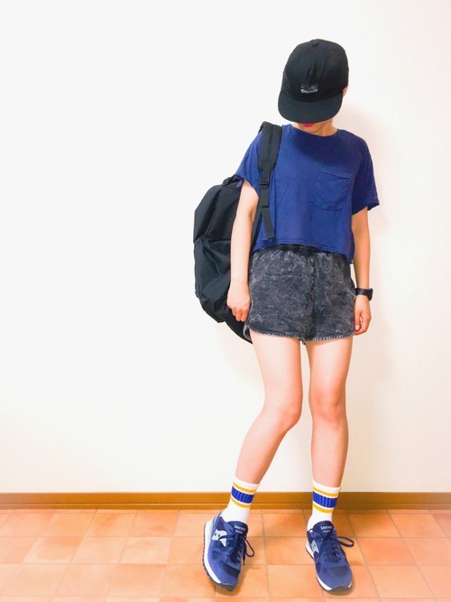鴨舌帽是必備的運動風格穿搭單品之一,簡單後背包讓人感受不到負擔,最吸睛的焦點是條紋圖樣的厚質料運動短襪搭配跑步鞋,讓人可以無拘無束地健走或慢跑。