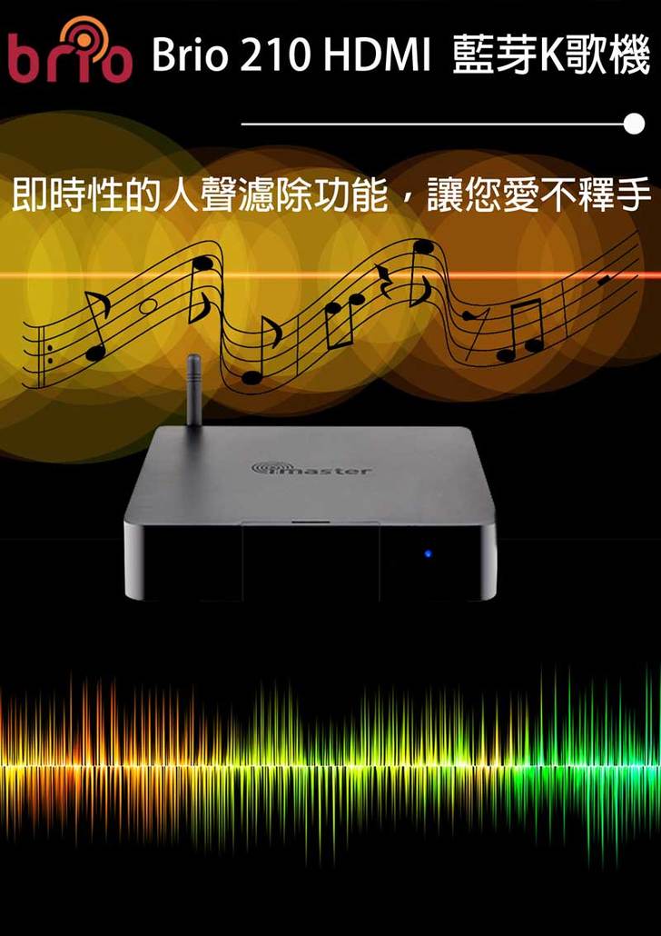 brio 210 藍芽HDMI K歌機擁有獨家專利的人聲濾除技術,新歌通常在市面上找不到伴唱歌版本,可上網找免費k歌APP、YouTube或MP3,可將 MP3 / MV 的即時性的人聲直接濾除約60%至80%,剩下的隱約人聲作為導唱,不用預先製作伴唱帶。