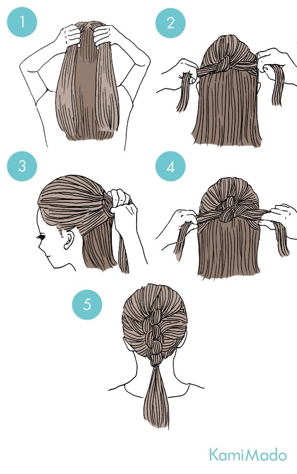④ 多出來的髮尾部分繞在橡皮筋外圍,最後再用橡皮筋固定一次。
