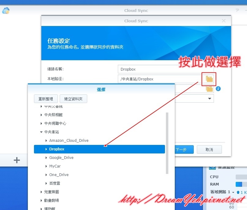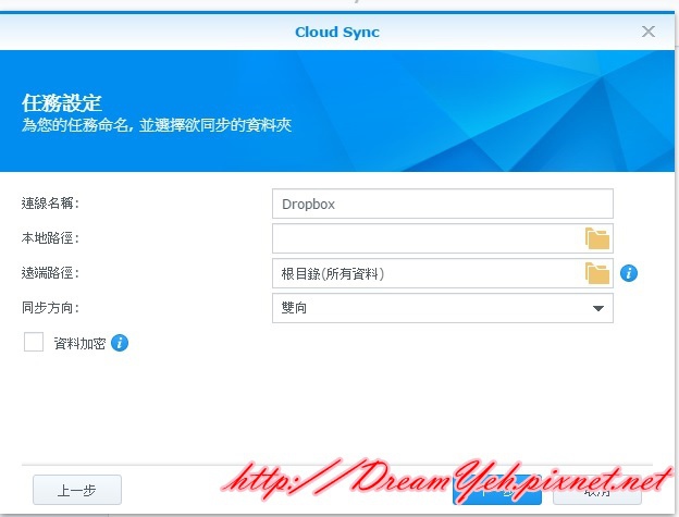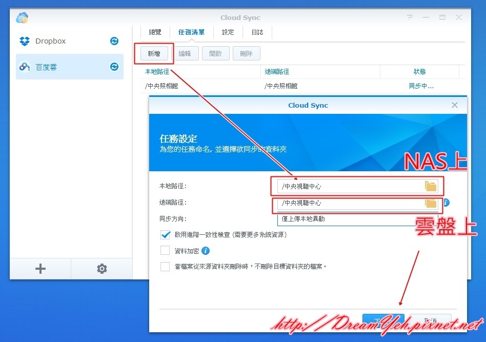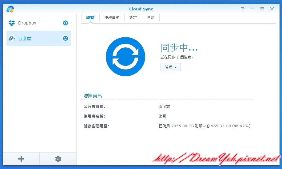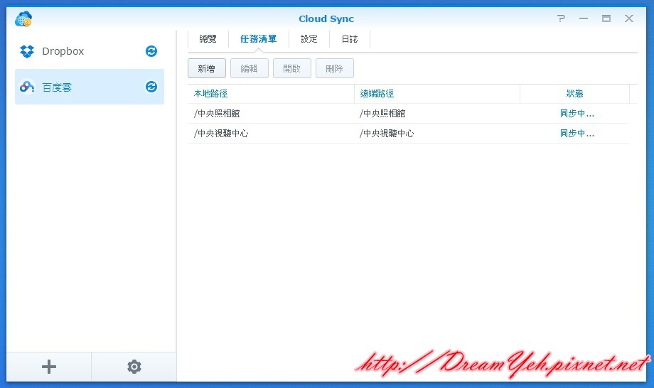 如果是DSM5.0以前的版本,接著我會告訴你,到此就結束了!接著都只是簡單地增加各雲端裝置。