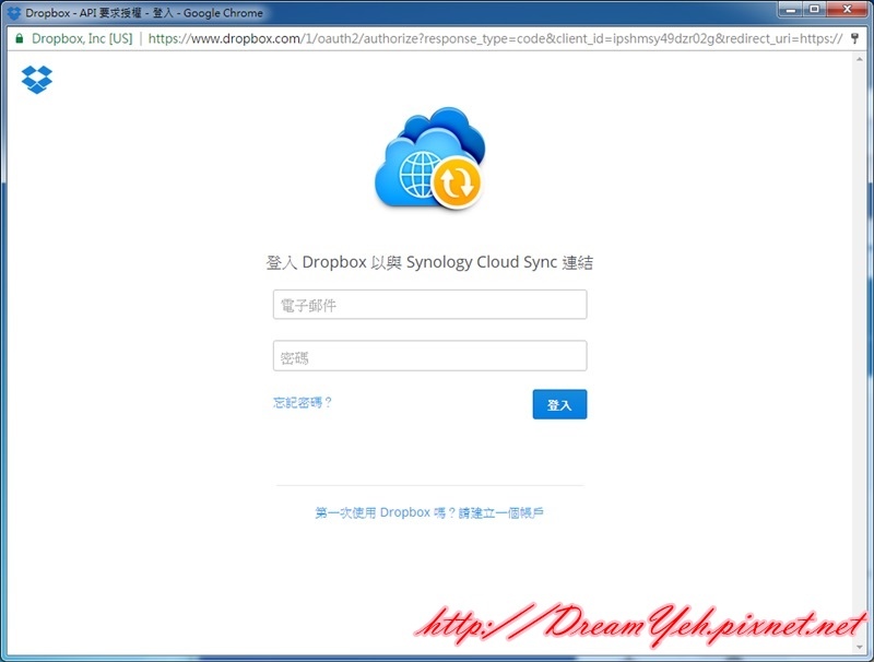 理所當然地,他會請你登入Dropbox的帳號密碼,輸入後再按下Allow->Agree。