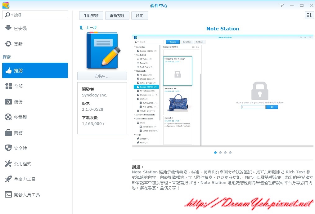 使用Note Station,可以幫助你在自己的雲端上,建立網路筆記本,這樣的話,就又多了雲端筆記本的選擇,更能增加你的工作效能。