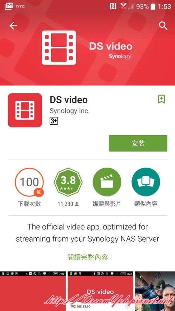 什麼?!有影嘸?要做到這個,首先前面環境都設置好了,接著請在手機上,在Play 商店中,安裝DS Video。