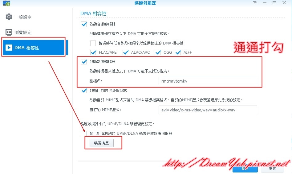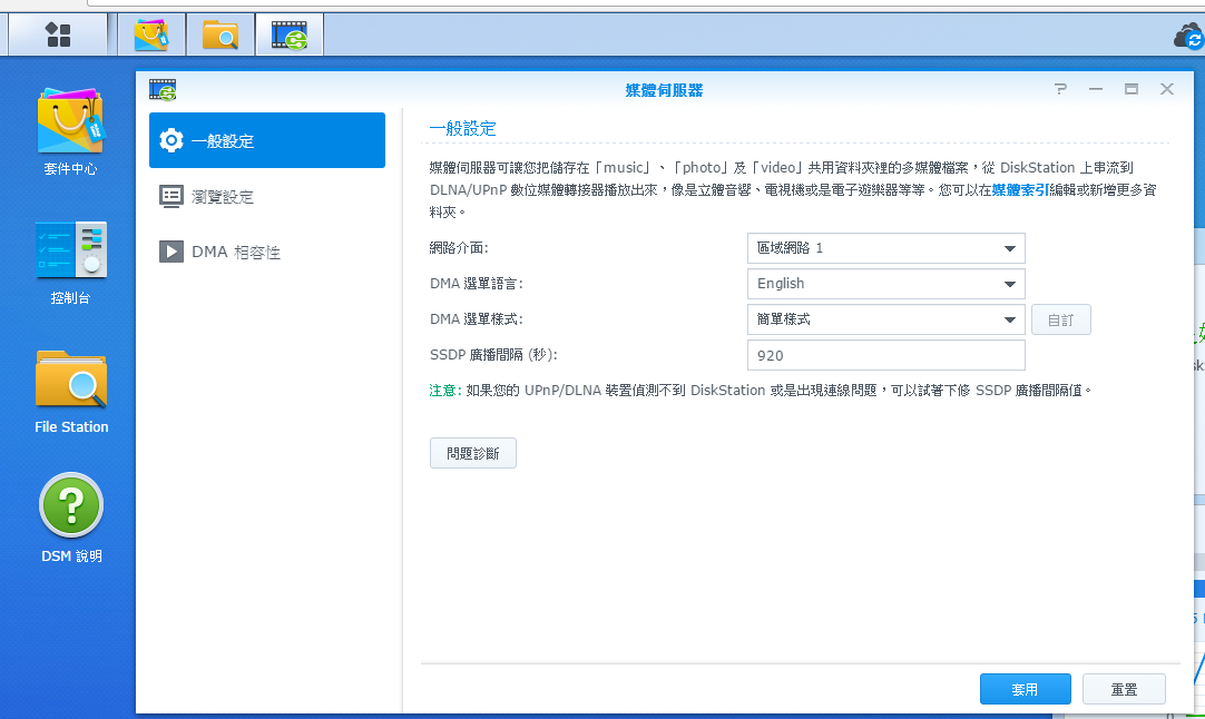 安裝此套APP的目的在於,讓你家的電視,可以透過DLNA介面,來看DS916+的影片。他開啟之後要做的設定超簡易,一般來說直接按下套用即可!