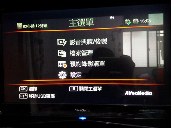 分別有影音典藏/後製、檔案管理、預約錄影清單、設定