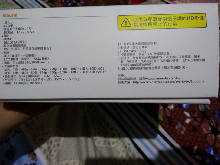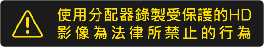 在外盒上有貼上警語唷~"請勿使用HDMI分配器去破解並錄製HDMI影音,這是違法的!",所以請小心使用~
