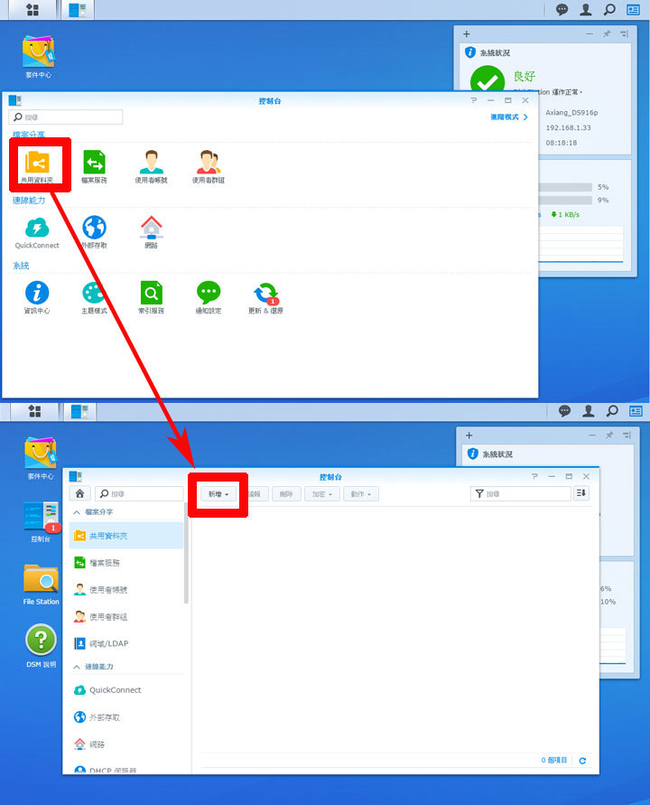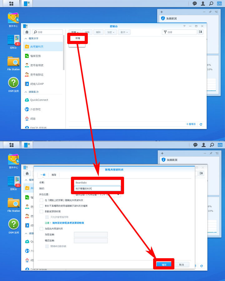 在DS916+中建立「共用資料夾」