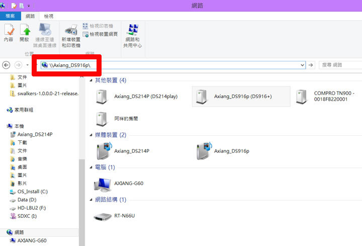 圖:如此一來,我們就可以透過電腦的檔案總管,直接存取DS916+中的共用資料夾囉!