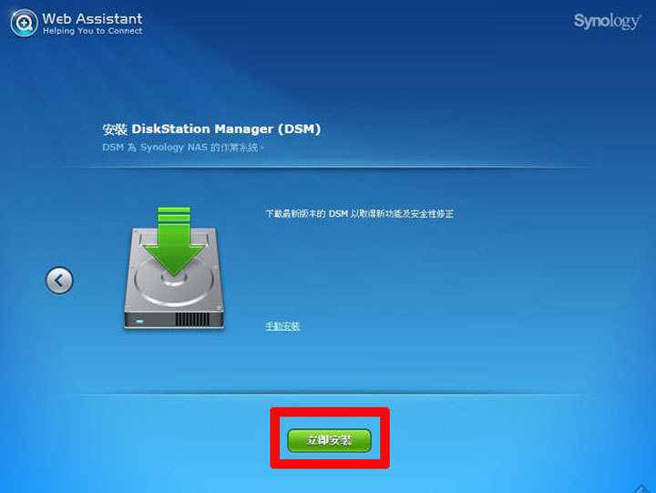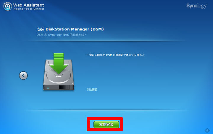 圖:由於我們的硬碟沒有安裝過DSM系統,因此可以選擇「立即安裝」來進行系統的初始化。