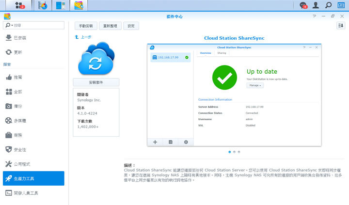 圖:安裝並啟動後,舊的Synology主機就具備資料同步到其他Synology NAS的能力囉!