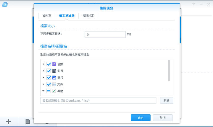 圖:或者是透過「檔案過濾器」功能,來詳細設定指定類型的檔案才會被同步過來。