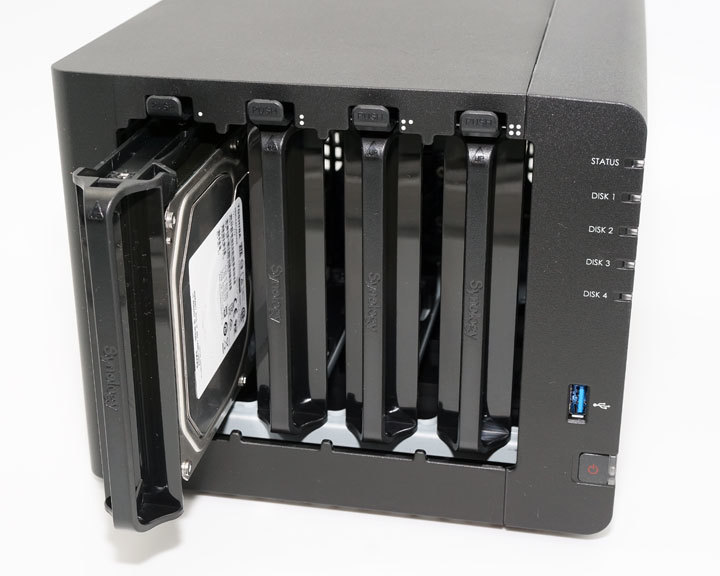 圖:接下來我們抽出DS916+第一格硬碟擴充槽,來進行硬碟的安裝吧!