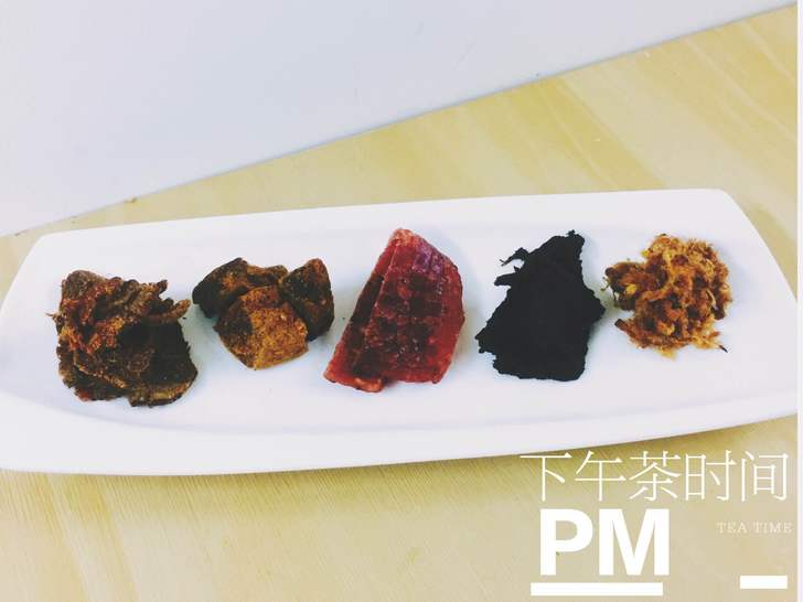 總共有5大包 分別是 沙茶肉角、有筋牛肉干、果汁牛肉片、肉鬆、黑胡椒肉片(豬)