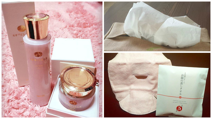 將剛剛敷在臉上的面紙(或化妝棉)和頸後的熱毛巾取下,直接不做任何多餘動作將化妝水和乳液都抹在臉上,因為剛剛濕敷過的關係,所以臉部肌膚很快就可以將保養品有效吸收進去,頓時臉上的水分和光澤都逐漸回復了一些。