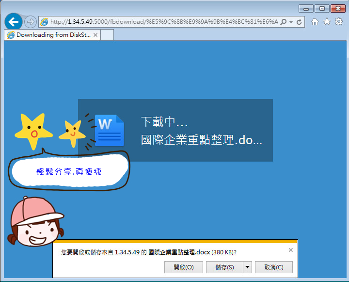 ▼網路上的任一台裝置,只要輸入連結後,就能下載你要分享的檔案,就是這麼簡單。