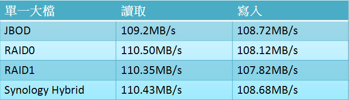 ▼這是單一大檔測試成績,傳輸效能都還不錯,平均都有110MB/s左右。