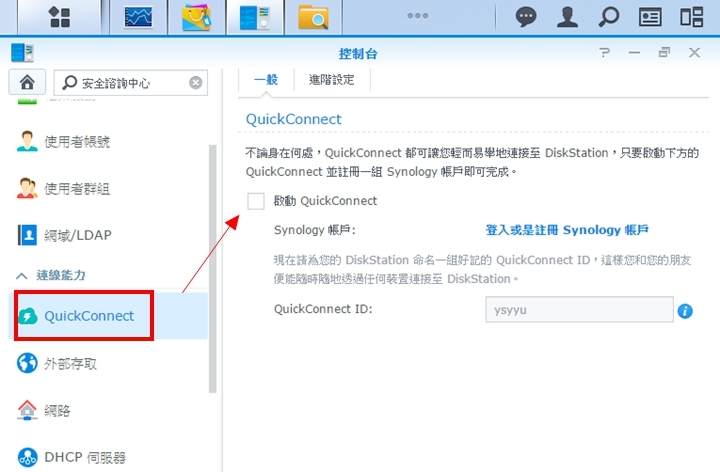 ▼QuickConnect 是一個讓你免記IP,免記落落長的網址,只要透過Synology提供的網路轉址服務,就能隨時隨地從遠端來存取你的NAS