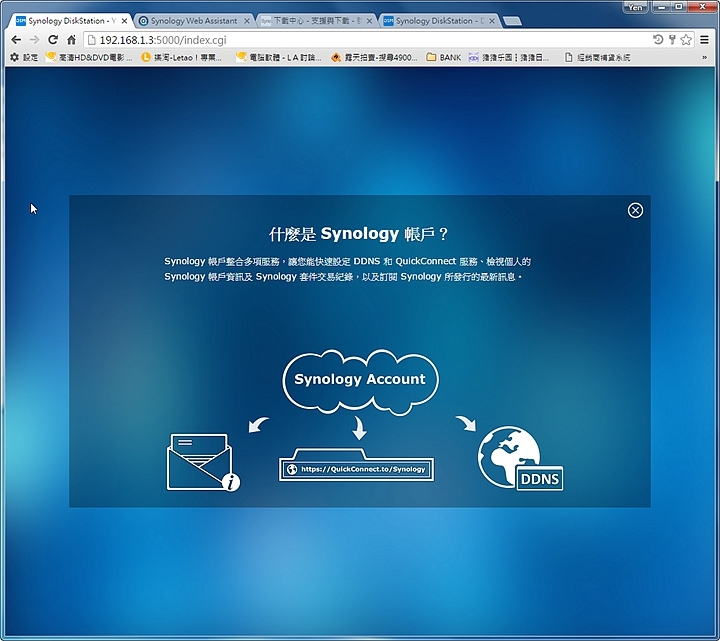 ▼另外,也要申請Synology帳戶,它最主要的功能將你DS916+的動態IP回報給QuickConnect伺服器,方便進行網域轉址的服務。