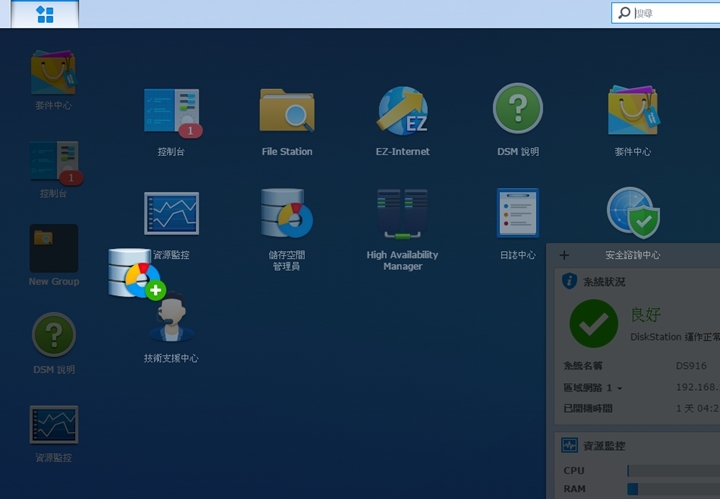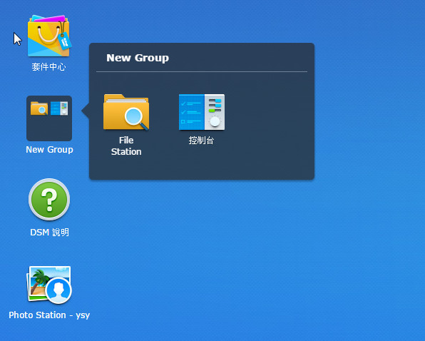 ▼同時DSM 6.0 的桌面捷徑圖示,也可以當作群組合併成一個資料夾。
