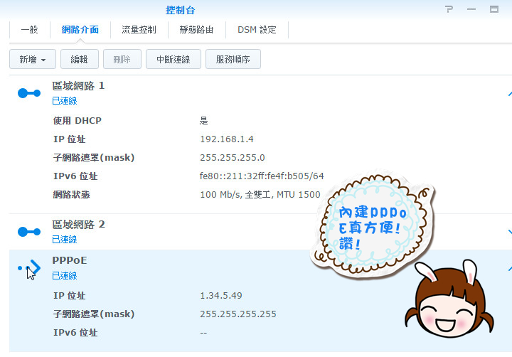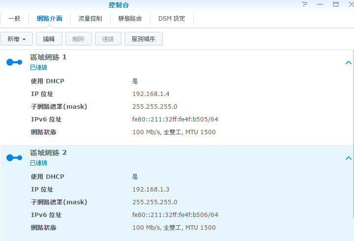 ▼在控制台裡,另一個重要功能就是網路的設定,畢竟NAS就是一套網路系統,沒有網路,一切就免談了。
