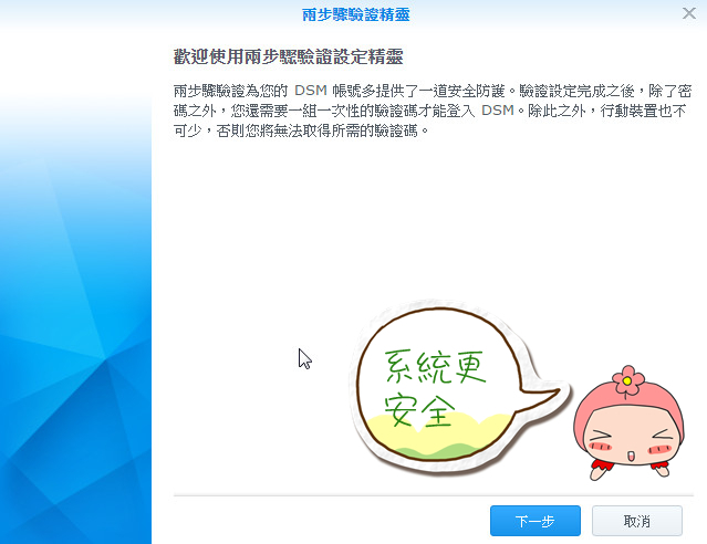 ▼值得一提的就是,DSM的帳號支援了兩步驟驗證,除了密碼外,還須要透過第二道的驗證密碼才能登入。