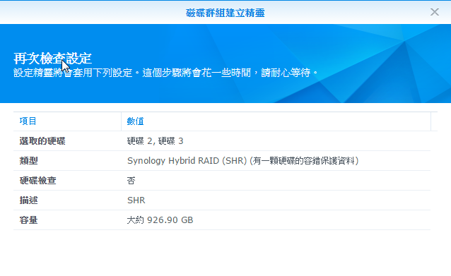 ▼由於手頭上找的到的硬碟只有兩個,因此只能試JBOD、RAID 0、RAID 1、Synology Hybrid RAID這四種陣列群組。