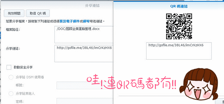 ▼除了分享連結外,甚至也可以產生QR碼,透過手機掃描取得連結,真是方便。