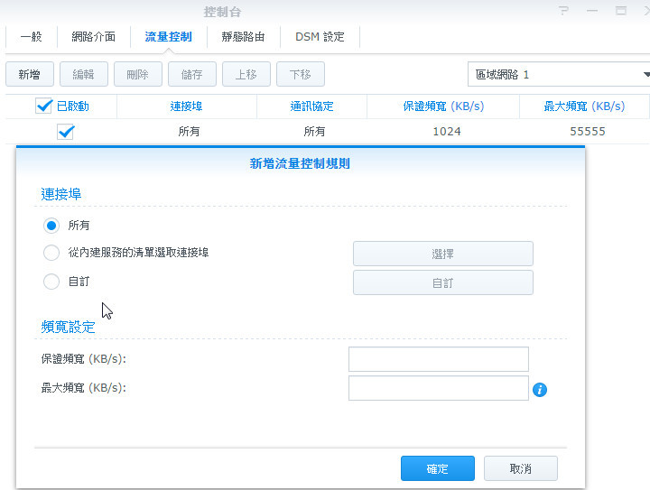 ▼在DSM 6.0中,直接就支援流量控管,免除須要另外下載其它控制軟體,這點真方便。