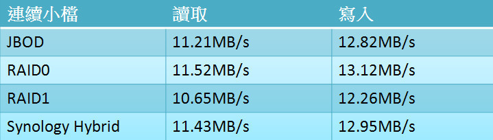 ▼這是連續小檔測試成績,可以看出,連續小檔的傳輸效率會大幅降低。