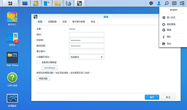 ▼當成功建立DSM 6.0系統後,我想最重要,也是最多人會注意到的就是,帳號、群組設定,以及網路連線的設定了。