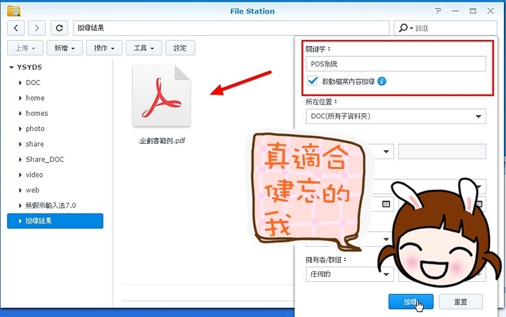 ▼只要打出內文關鍵字,就連PDF內文也可以搜尋出來,筆者試過,常見的WORD、EXCEL都沒問題。