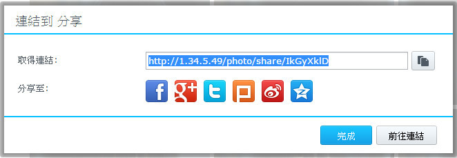▼在DSM 6.0中,你不必特地新增任何帳號,直接點選分享,系統會產生一組網址,你可以馬上將連結網址透過FB等方式分享出去。