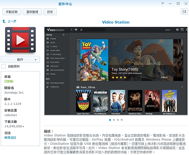 ▼想要享受Video Station 的功能,你可以在原廠官網或套件中心裡下載,安裝也十分簡單。
