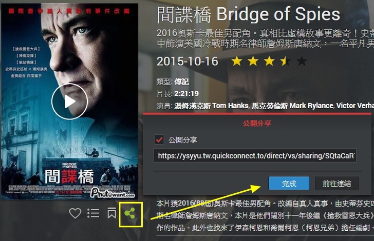 ▼甚至,你也可以透過"分享"功能,產生一組連結碼,將這組連結碼告知要分享的朋友,就算沒有NAS帳號,也可以觀賞你的影片。