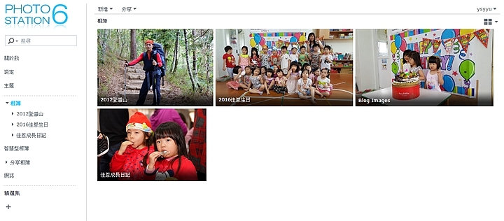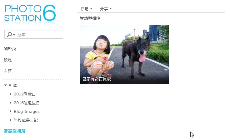 ▼Photo Station主畫面功能很簡潔,左邊主要功能表跟設定選項,而上方可以看到分享跟新增相簿功能。