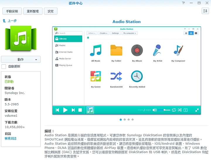 ▼Audio Station需要透過套件中心就可以下載安裝。