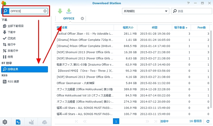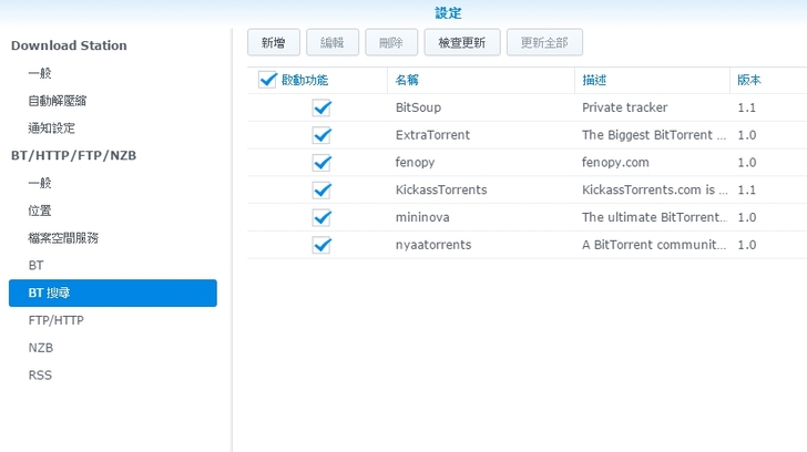 ▼另外DSM 6.0的Download Station,還內建BT搜尋引擎,讓你馬上可以搜尋想要的影片種子,或是軟體,真是很方便!!