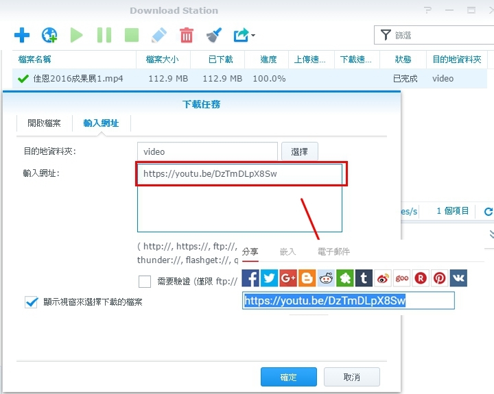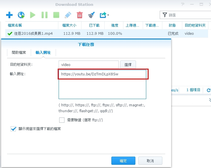 ▼還有DSM 6.0的Download Station直接支援youtube影片的下載,只要貼上youtube影片網址就能下載,可說是下載youtube的好幫手。